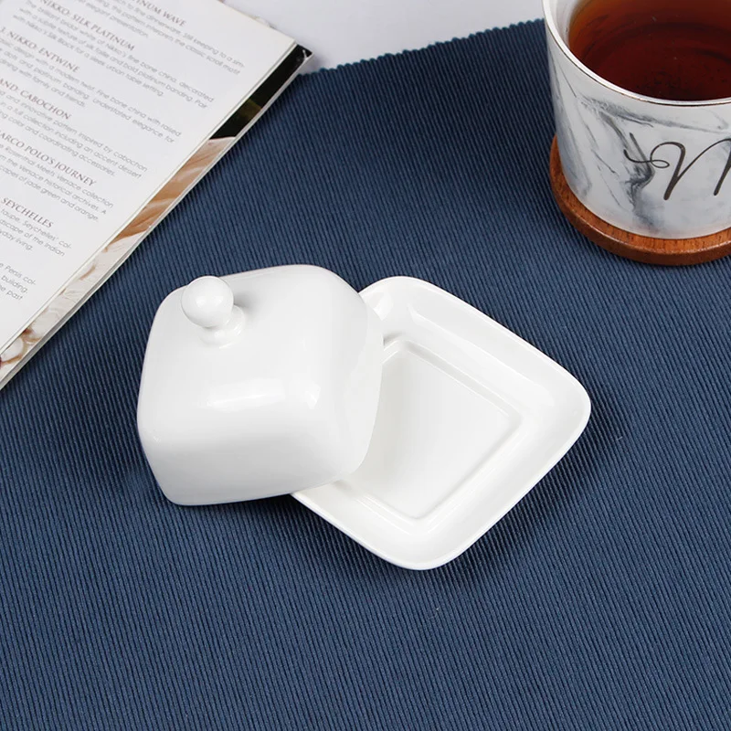 Ceramic Butter Storage Box Butter Cheese Fresh-Keeping Box with Lid Cake Fruit Dish Restaurant Hotel Kitchen Dish