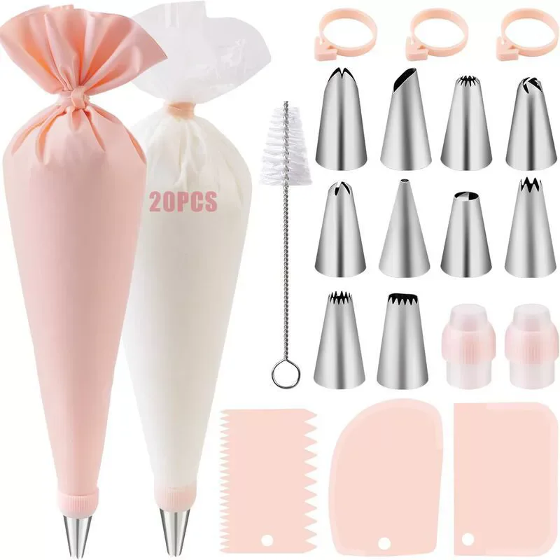 Piping Bags and Tips Set Cake DIY Decorating Kit with Stainless Steel Nozzle Reusable Silicone Pastry Cake Decorating Tools